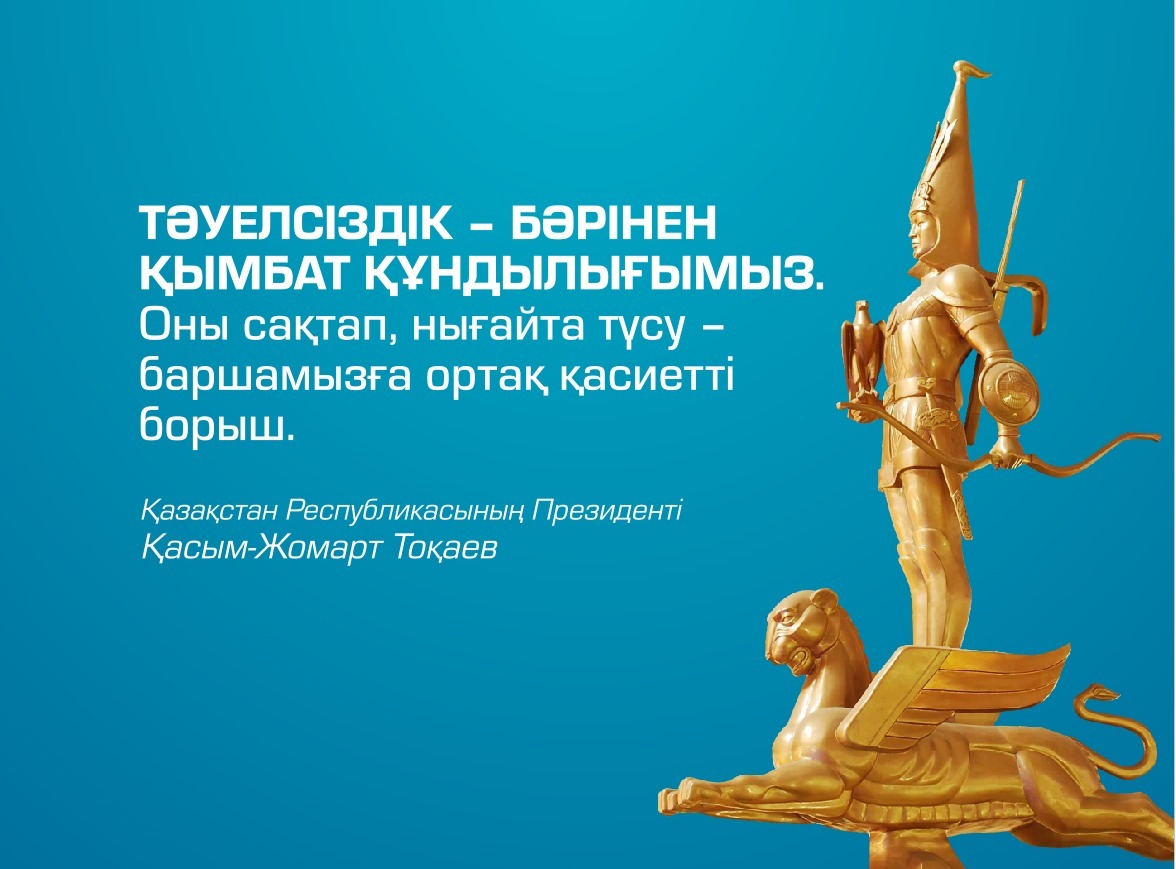 Бұл күн – біздің бостандығымыздың, бірлігіміздің және халықтың жасампаздық пен өркендеуге деген ғасырлар бойғы ұмтылыстарының символы. Біз еліміз егеменді даму жылдарында қол жеткізген бейбітшілікті, тұрақтылық пен жетістіктерді шын мәнінде мақтан тұтамыз.